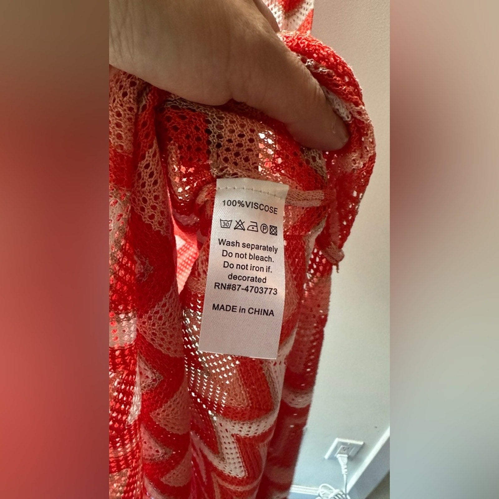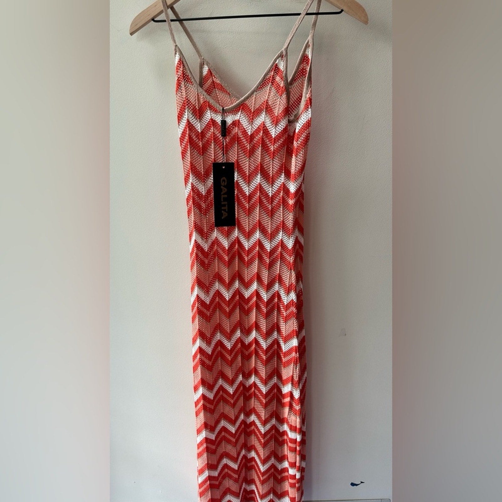 Galita cover up | crochet beach dress | chevron knit cover-up | color block resort wear | red white pink crochet dress | summer swim cover-up | sheer lightweight crochet dress | size large | sku 823