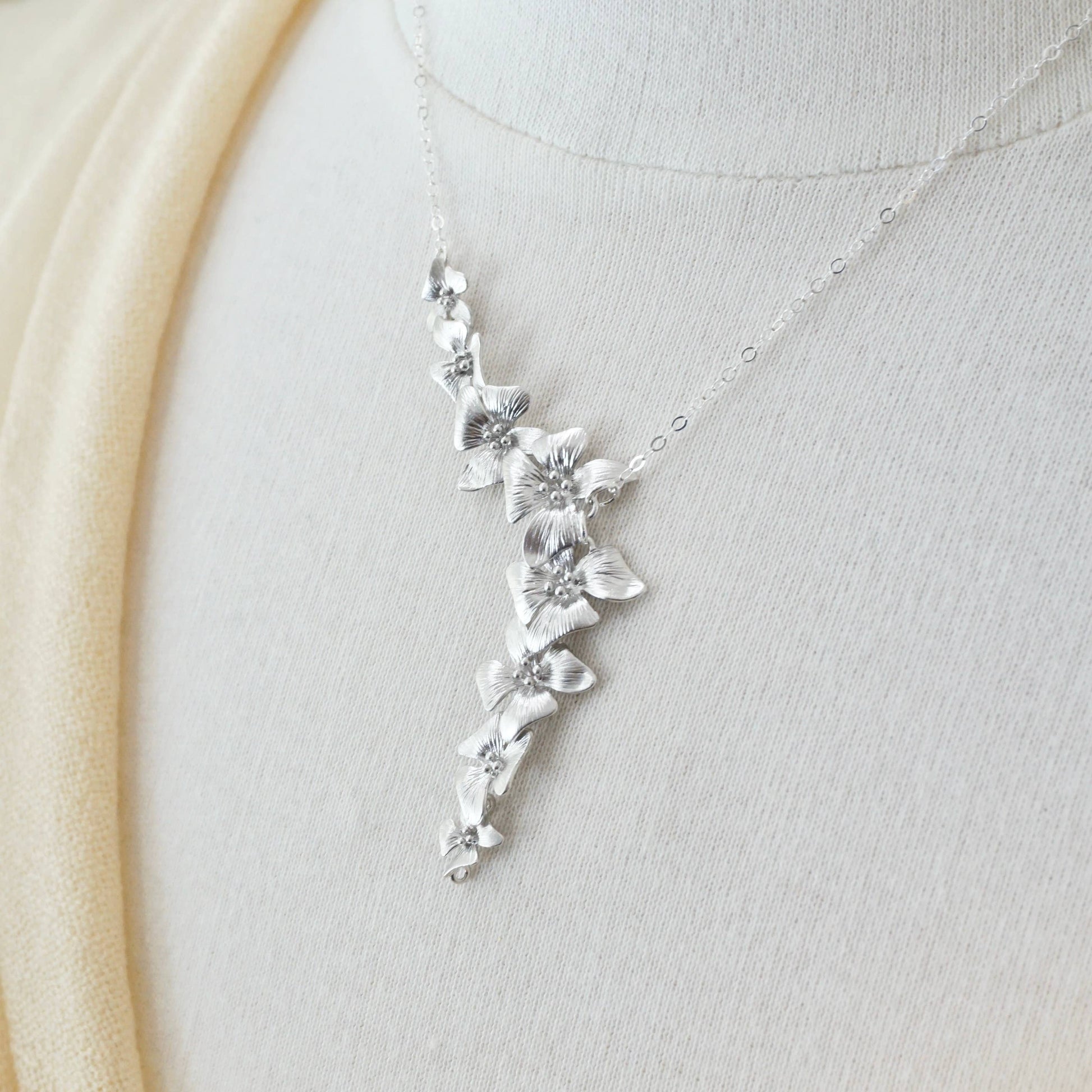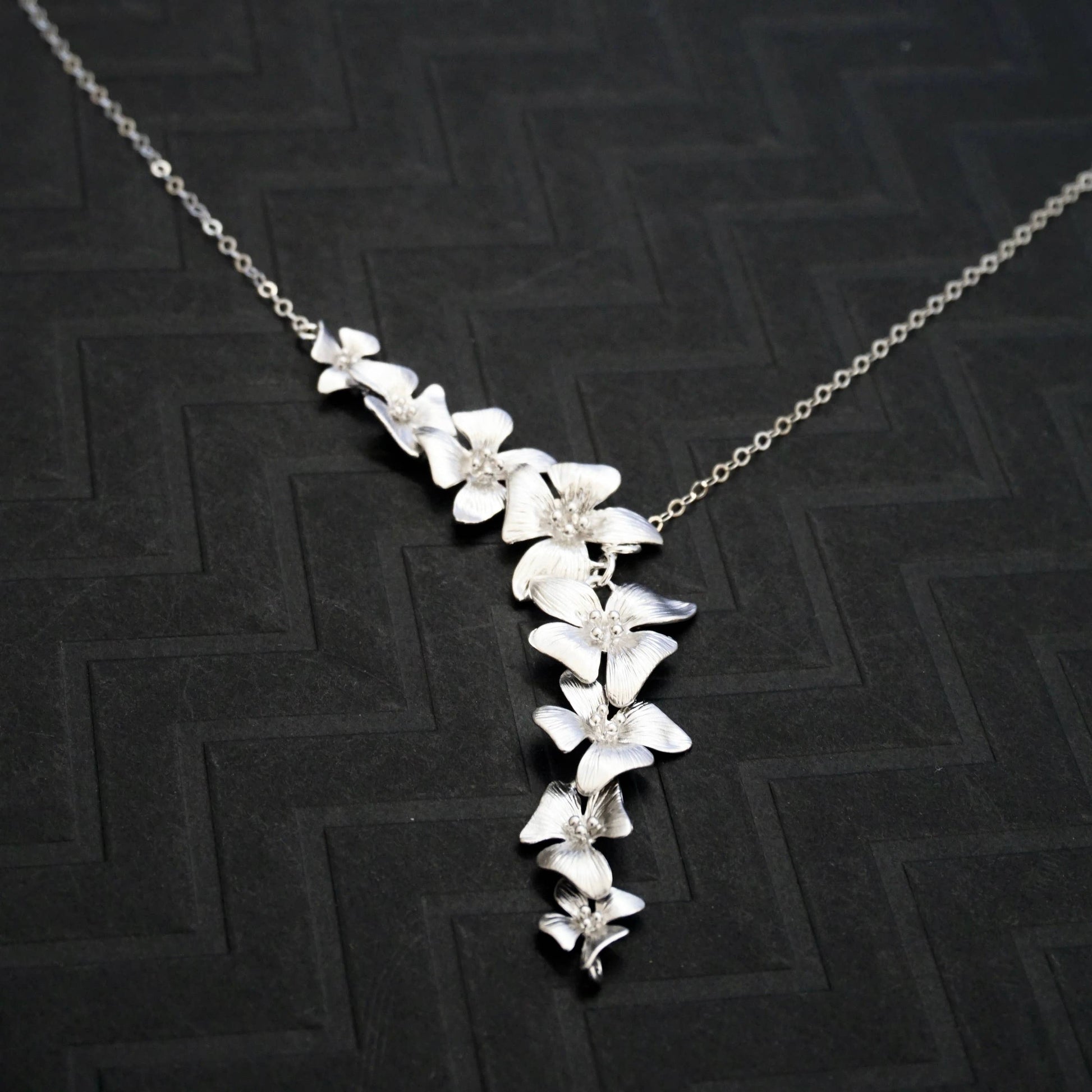 Silver/gold asymmetrical dogwood flower necklace