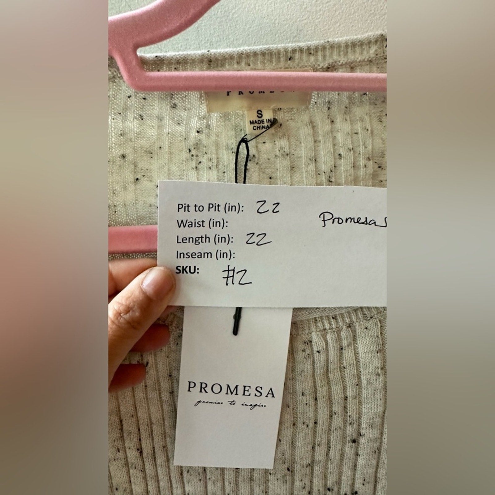 new Beige Speckled Ribbed Knit Sweater, Size S | SKU72