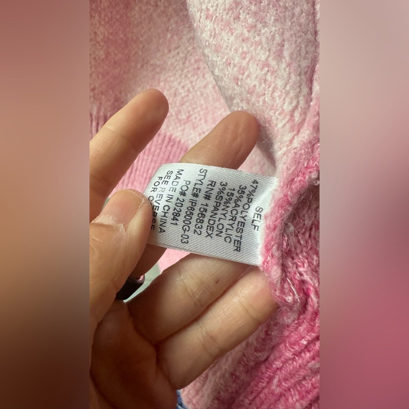 SEO Tags: bibi cardigan sweater polyester acrylic nylon spandex pink white heart print open front pockets size s 1980