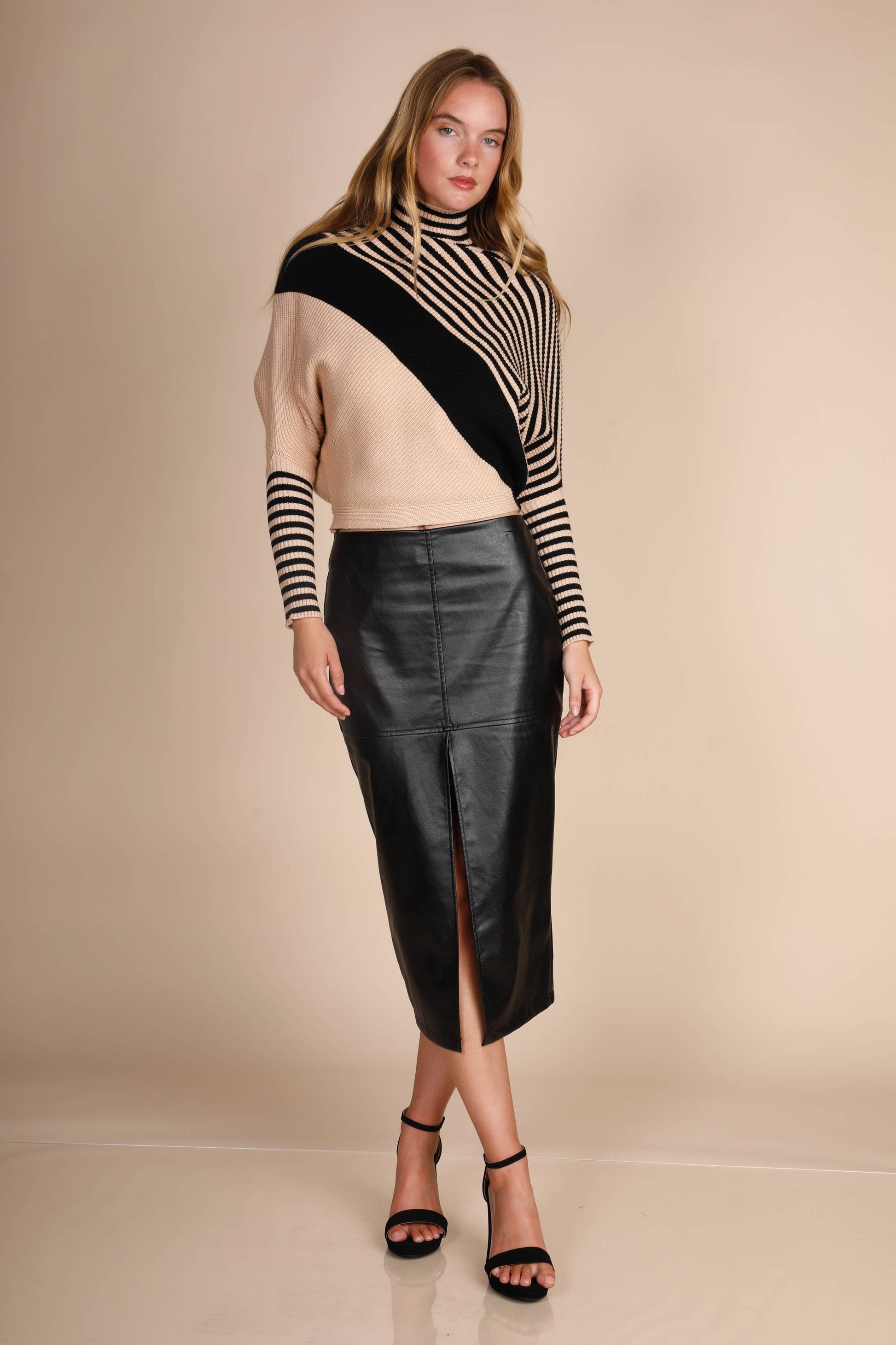 TURTLE NECK DIAGONAL STRIPES SWEATER